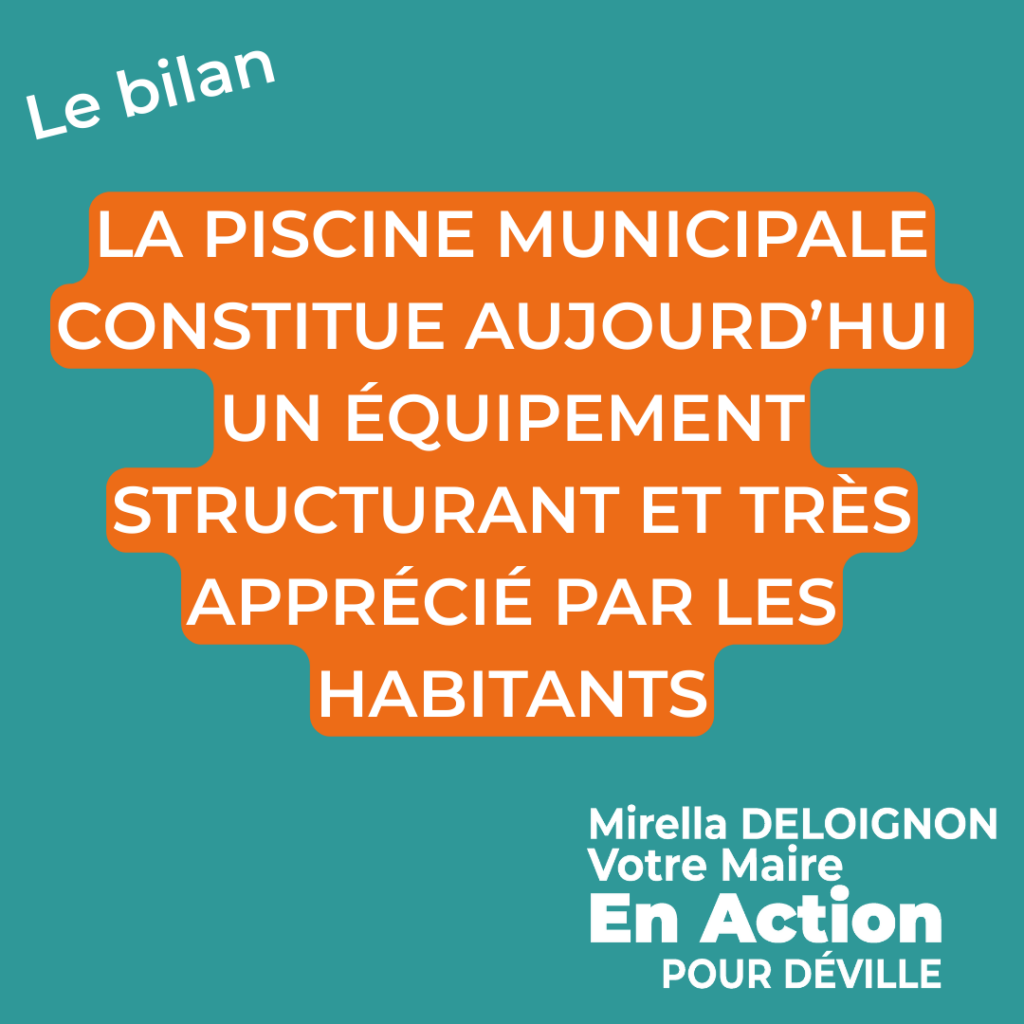 La piscine municipale Christine Caron constitue un équipement structurant particulièrement apprécié des habitants. Elle permet notamment à l’ensemble des élèves des écoles élémentaires de bénéficier d’un apprentissage de la natation dans des conditions optimales, contribuant à la sécurité des enfants et à l’égalité d’accès à la pratique sportive.